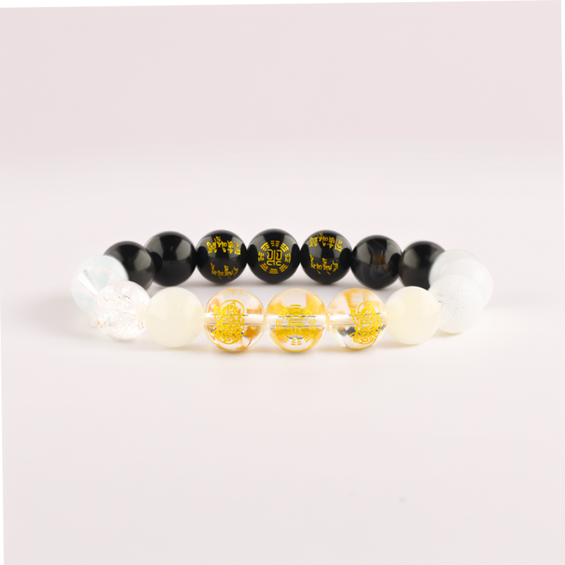 Black and White Wealth God beads synergize with Aquamarine, attracting ethical financial opportunities while empowering wearers to negotiate with courage and strategic foresight—ideal for executives or entrepreneurs balancing risk and integrity.