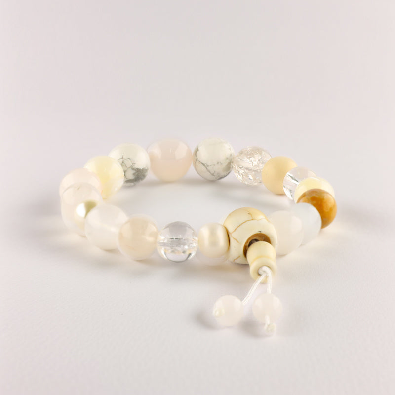 The 18 - bead structure echoes cosmic rhythm (3×6)—a symbol of mind, body, and spirit resonating with universal energy. Sliding beads, reminiscent of ancient abacus mechanics, activate White Agate’s unwavering focus and White Phantom Quartz’s meditative depth. Even the Butterfly Shell’s delicate ridges narrate nature’s paradox: "fragility and strength coexist." White Fossil, bearing 200 million years of geological memory, and Coral Jade, etched with time’s abundance, bridge primordial survival wisdom to modern resilience.