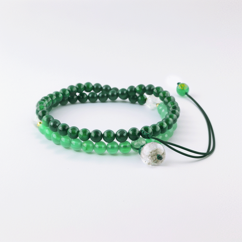 Its beads intertwine the grounding essence of earth with the upward surge of renewal. Earth’s gifts (Green Phantom Quartz, Dry Green Jade) anchor financial growth and physical resilience, transforming scattered efforts into steady accumulation. The spirit of renewal (Green Strawberry Quartz, Green Agate) awakens charm and harmony, softening conflicts in love or collaboration. Together, they dissolve barriers between practicality and passion: earth prevents recklessness, renewal fuels innovation without uprooting stability. Himalayan undertones (implied by Wood’s "aura coordination") ensure wearers radiate quiet magnetism, drawing allies and opportunities aligned with their truest path.