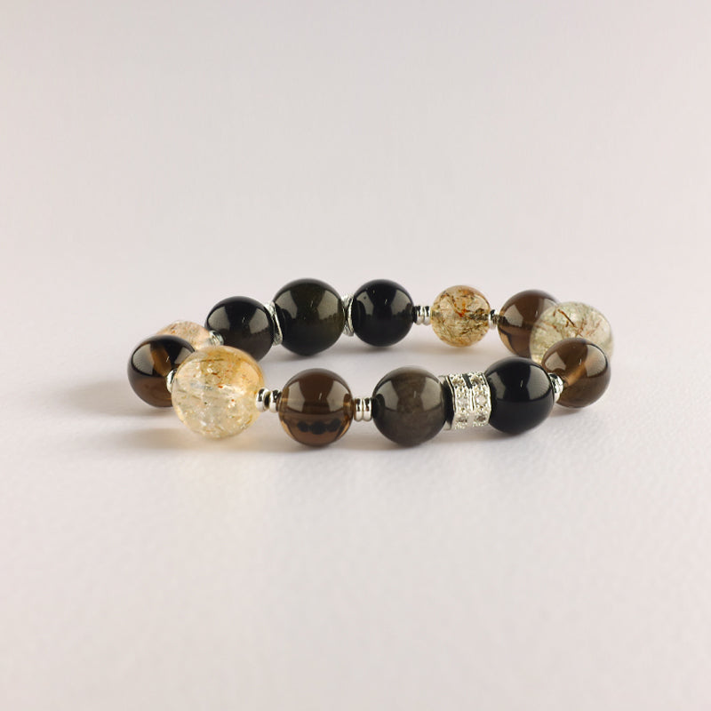 Forged from Polynesian wave chants and Incan sun rituals, this cuff’s trinity converts subway chaos into meditative flow. Obsidian & Tourmaline brew Biofield Detox Elixir; Smoky Quartz roots Grounding Cord deep into Gaia’s core.